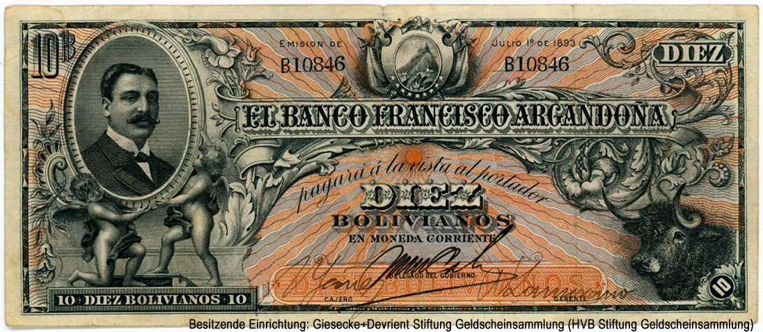 10 боливиано — Julio 1º de 1893. ST – A. |