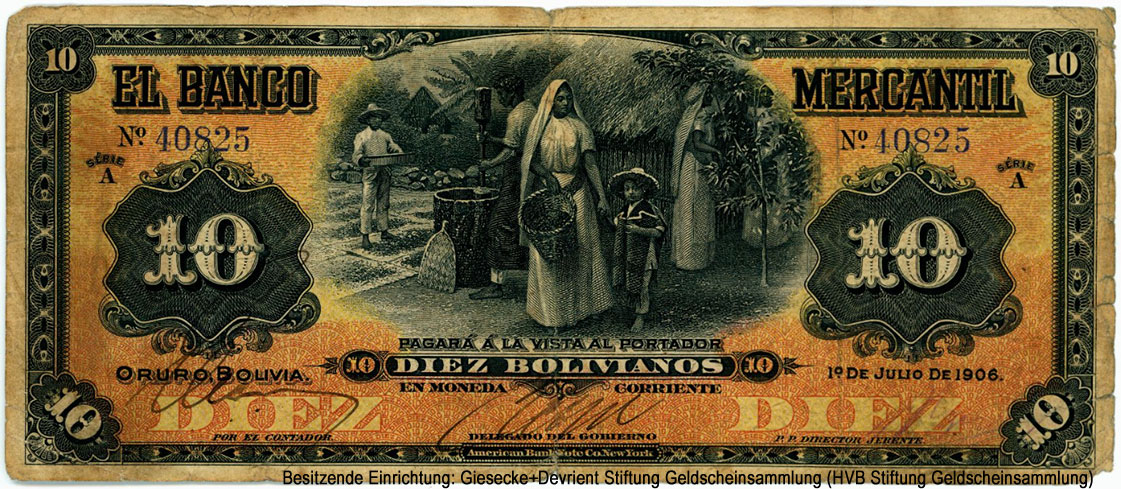 10 боливиано — 1o De julio De 1906. Series A-B. 184 х