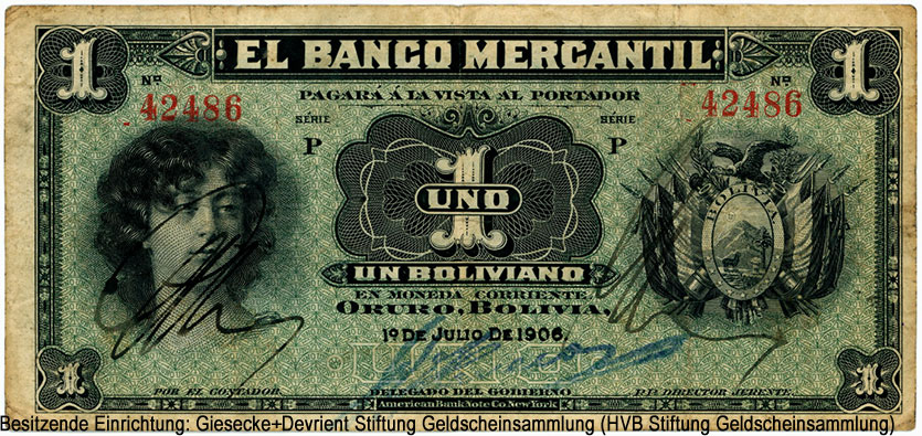 1 боливиано — 1o De julio De 1906. Series C-P.