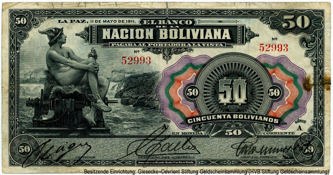 50 боливиано — 11 DE MAYO DE 1911. SPECIMEN (ОБРАЗЕЦ) |