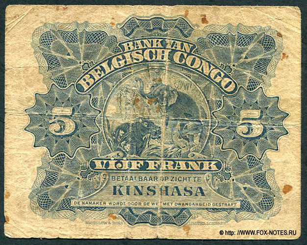 — Государственные денежные знаки Бельгийского Конго |