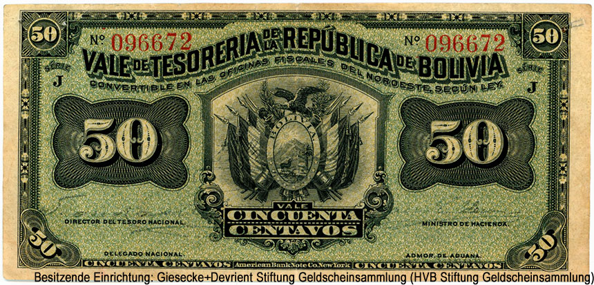 República de Bolivia. Выпуск денежных знаков 1902 года.