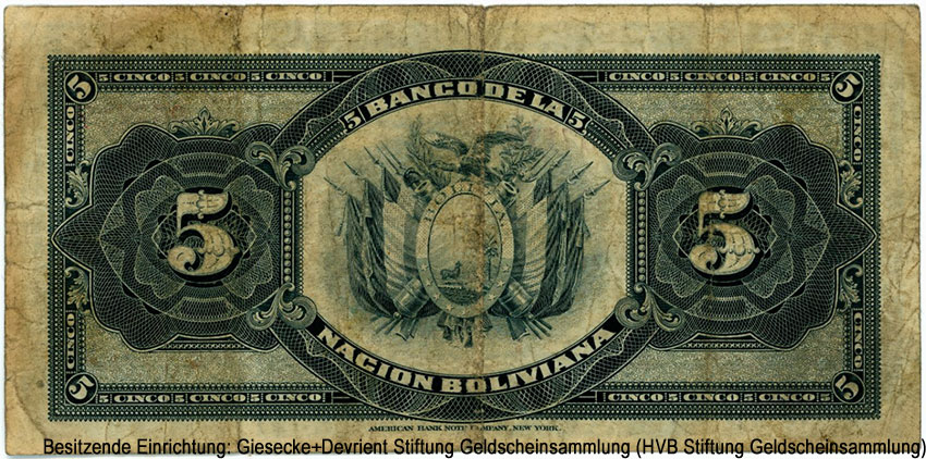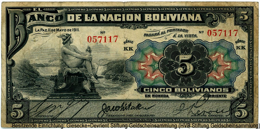5 боливиано — 11 DE MAYO DE 1911. Тоже. Series AA-JJ,