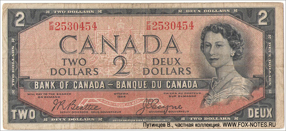 2 доллара — 1954. Пдпс.: Beattie-Rasminsky |