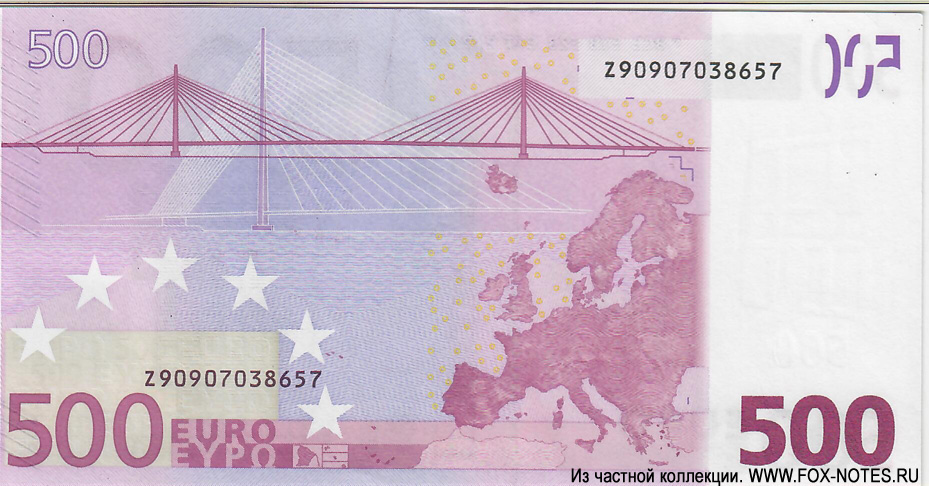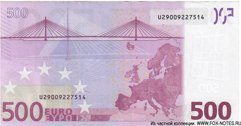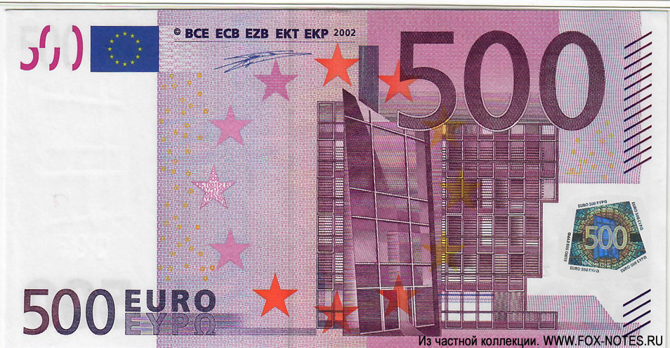 500 евро — 2002. 160 × 82 мм код D (Setec Oy) |