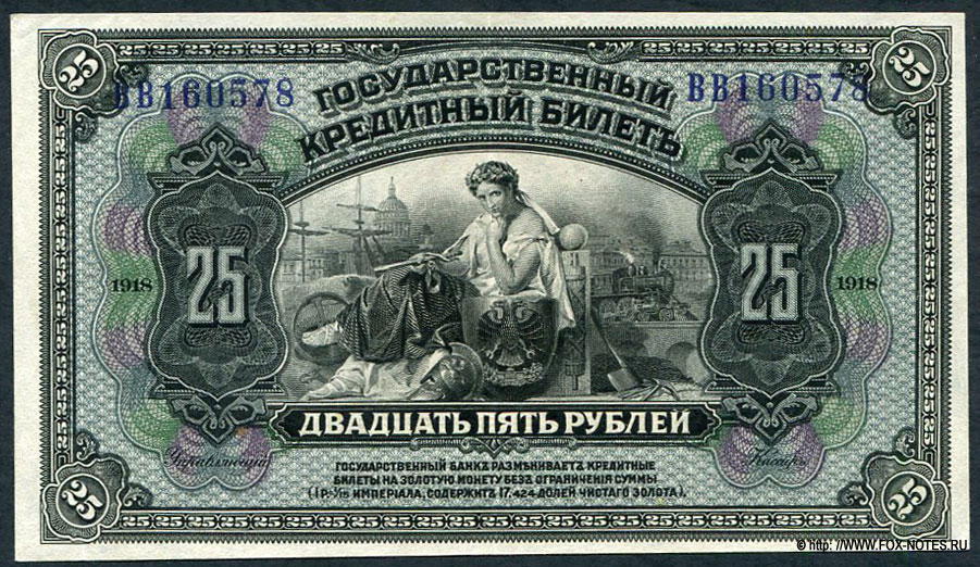 республика. Государственный кредитный билет 25 рублей 1920