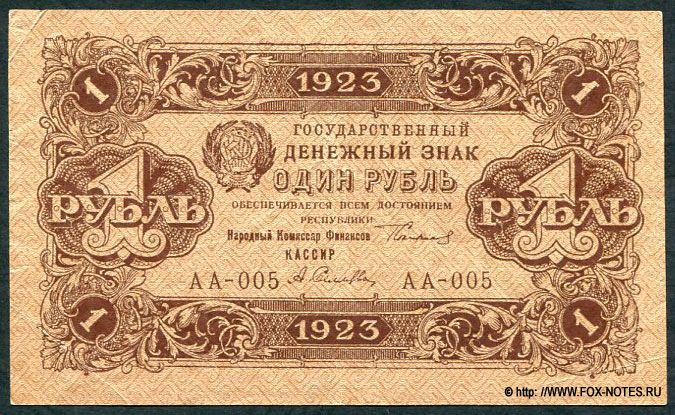 ОДИН РУБЛЬ. ОБЕСПЕЧИВАЕТСЯ ВСЕМ ДОСТОЯНИЕМ РЕСПУБЛИКИ. НАРОДНЫЙ КОМИССАР ФИНАНСОВ.