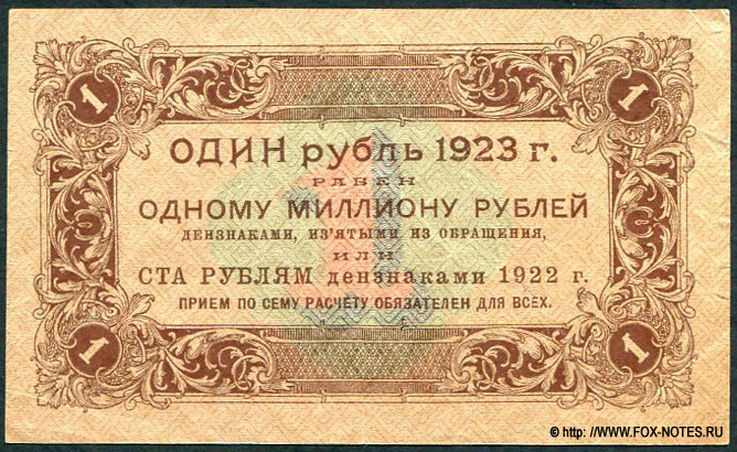 тип1 - ОДИН РУБЛЬ 1923 Г. РАВЕН ОДНОМУ МИЛЛИОНУ РУБЛЕЙ ДЕНЗНАКАМИ,