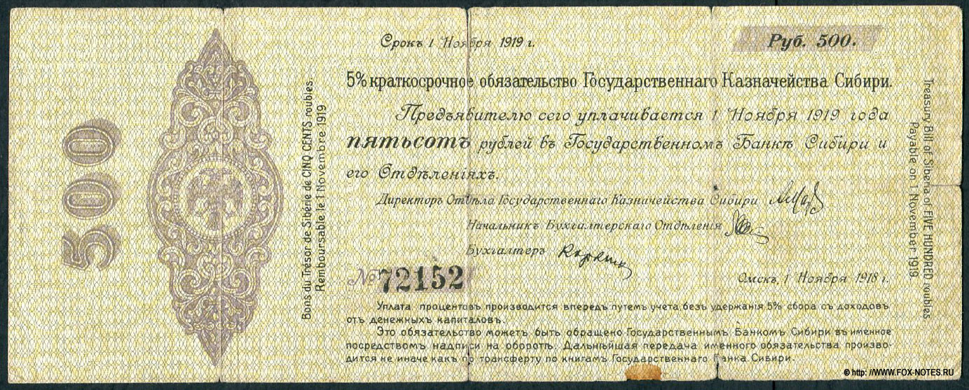 5% краткосрочное обязательство Государственнаго Казначейства Сибири.