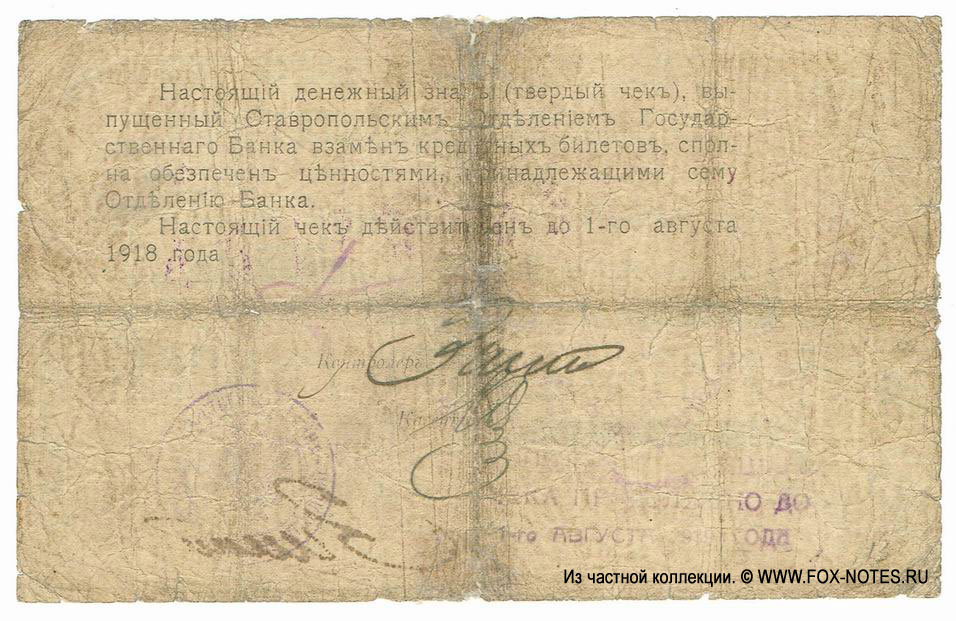 Настоящій денежный знакъ (твердый чекъ), выпущенный Ставропольскимъ