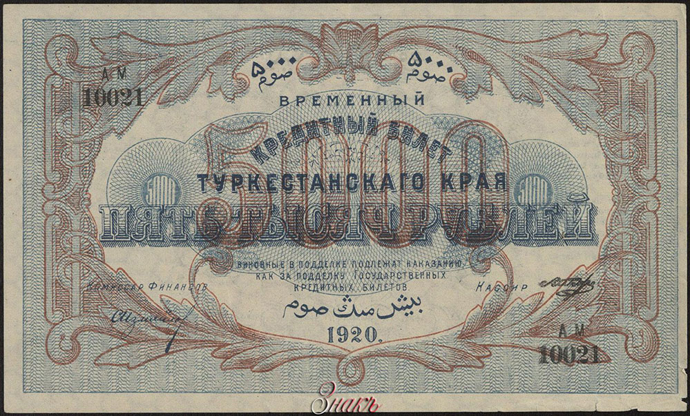 Имеет хождение в пределах Туркестанского края и обязателен к приему