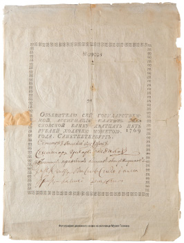 ассигнаций 1769 года достоинством от 5 до 500 рублей, отпечатанные