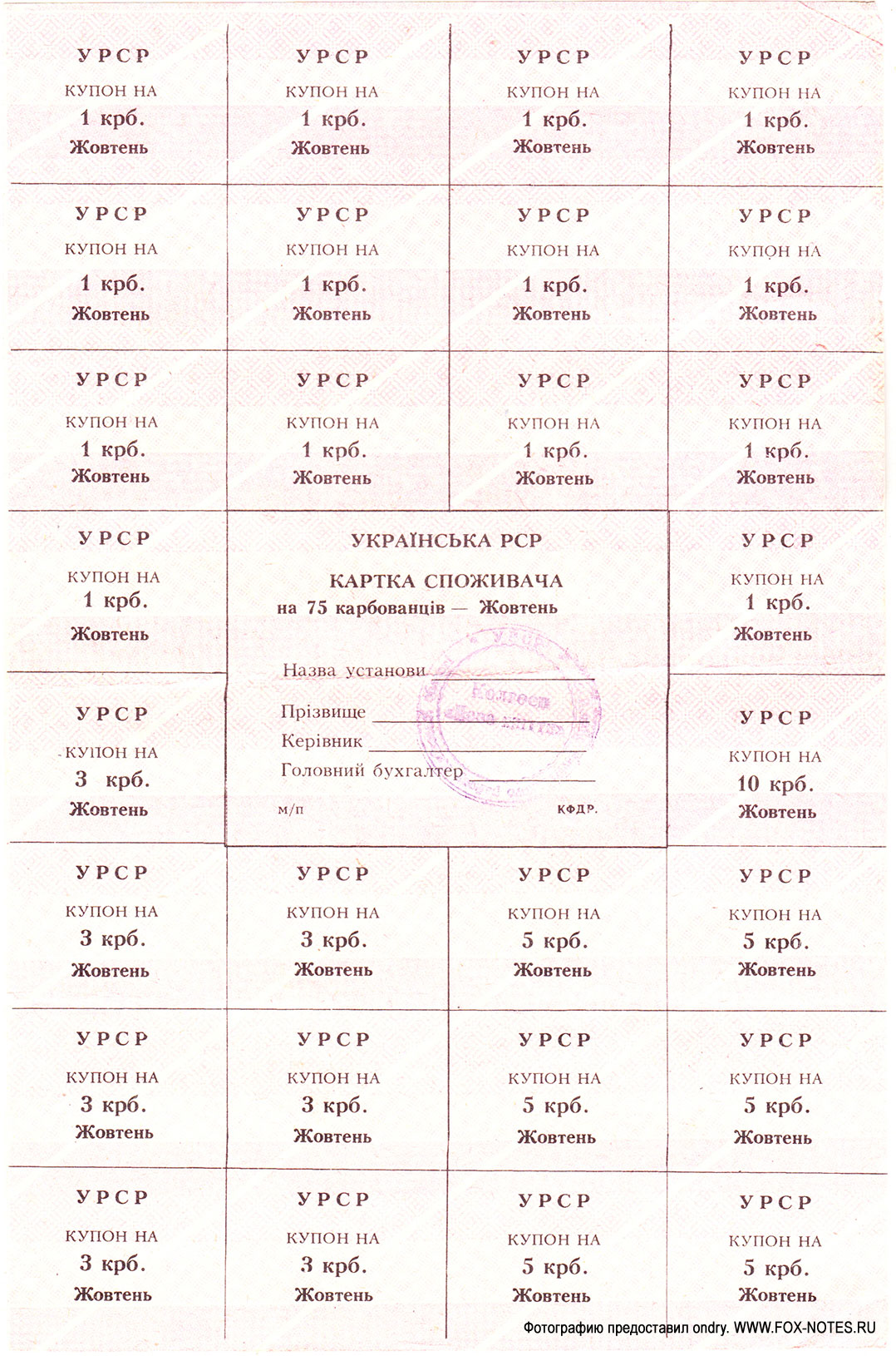 75 карбованцев — Жовтень ND(1991). КФДР. |