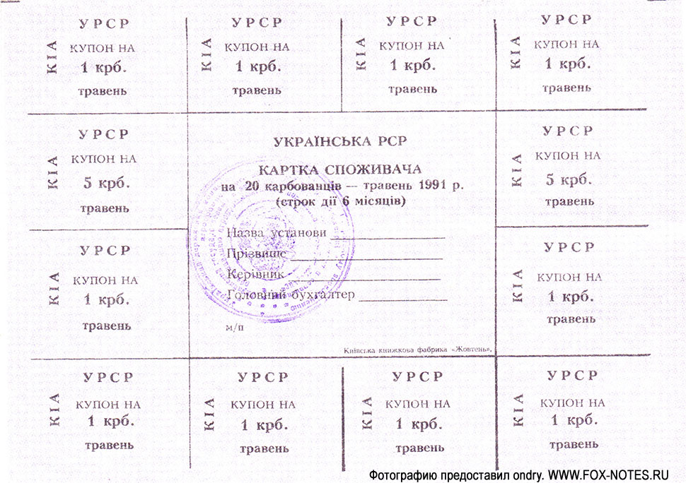 20 карбованцев — сiчень 1991 р. ДОН. ВРД |