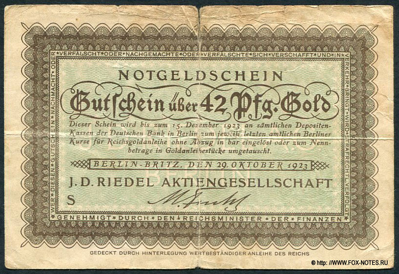 42 пфеннига золотом — 29.OKTOBER 1923. |