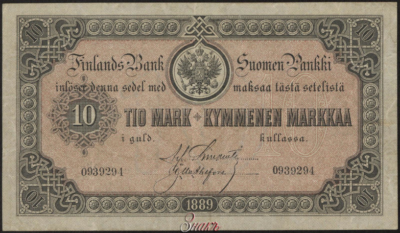 Финляндское. Финляндский Банк 10 марок золотом — 1889. Пдпс.: Wallenius,