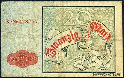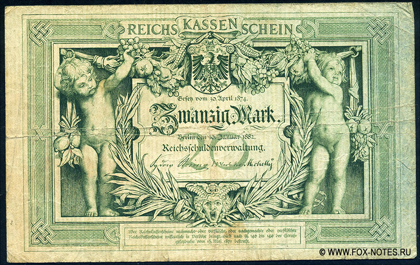Водяной знак Wertzahl 20 (20 марок 1882).