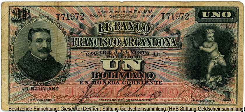 1 боливиано — Enero 1º. de 1898. 138 х 63 мм.