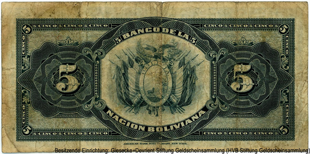 5 боливиано — 11 DE MAYO DE 1911. Гильош гладкий.