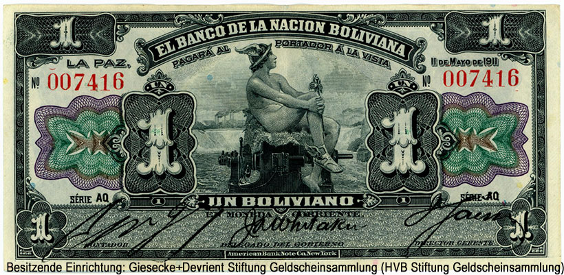 1 боливиано — 11 DE MAYO DE 1911. То же. Series AA-ZZ