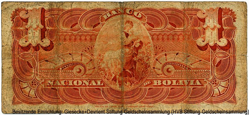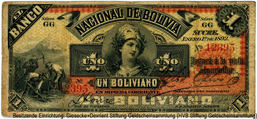 1 боливиано — Julio 1º de 1892. 140 х 65 мм.