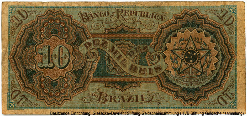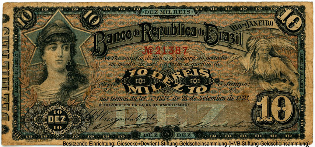 10 мильрейсов — lei №183 C de 23 de Setembro de 1893.