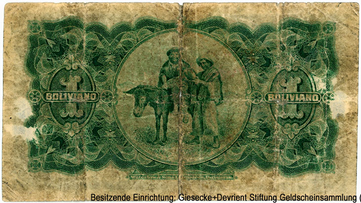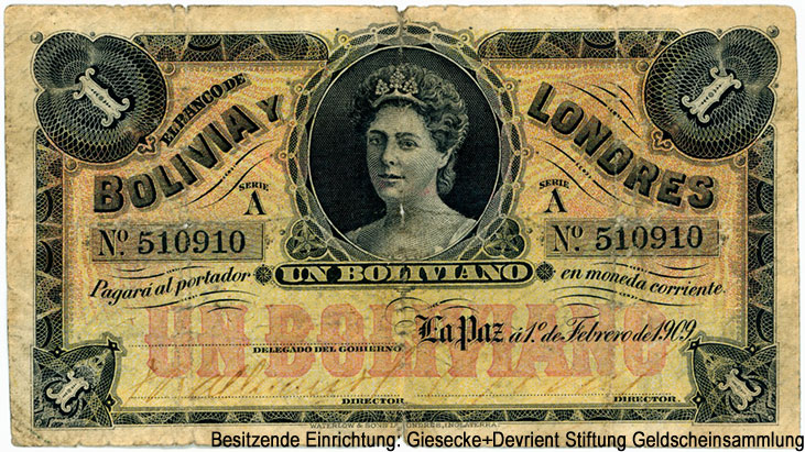 1 боливиано — 1. de Febrero de 1909. 120 х 68 мм.