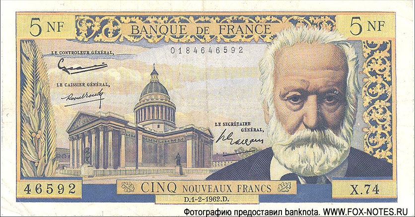 Билеты банка Франции. Тип - 1959. Выпуск 1959 - 1965. Выпуск в новых