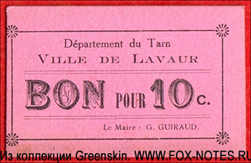 Лавор (Lavaur). Ville de Lavaur. Городские, частные выпуски Франции периода 1914 - 1925 г.