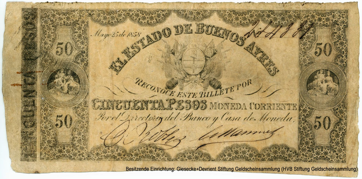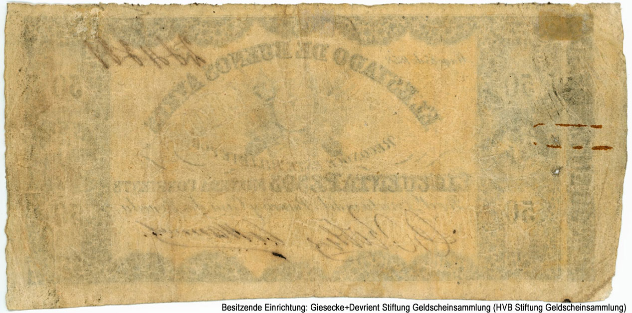 50 песо — Mayo 25 de 1858. 208 х 104 мм. [5.1] |