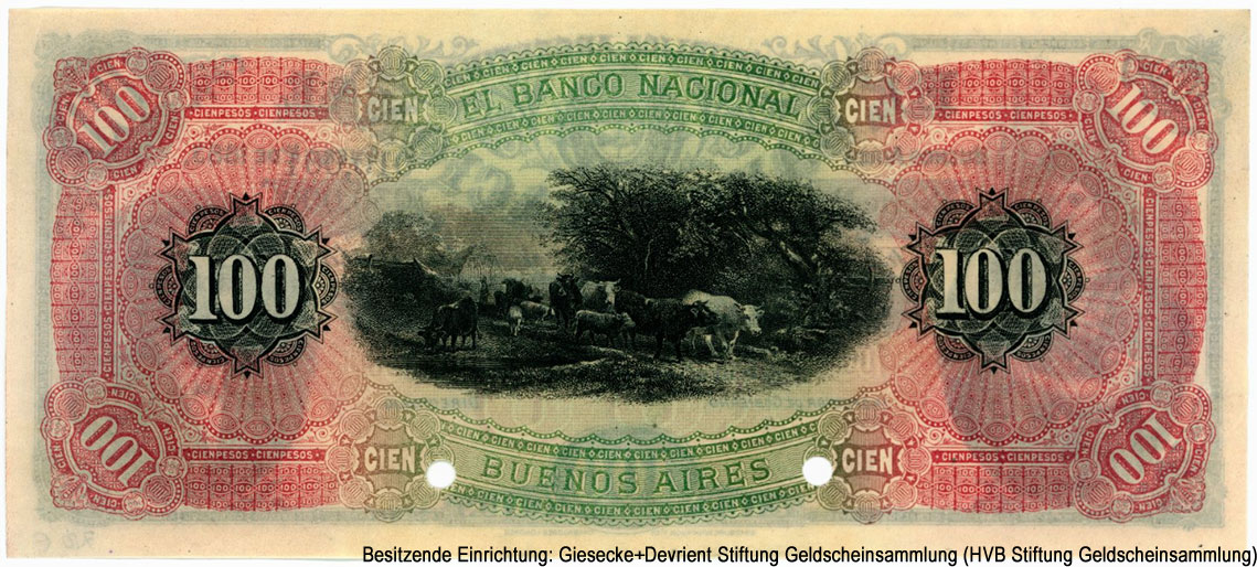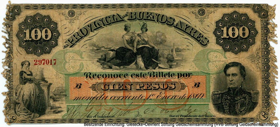 100 песо — 1º Enero de 1869. 192 х 85 мм. [5.1] |