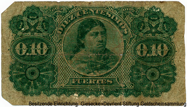 10 песо — Abril 1º de 1867. 165 х 85 мм. [5.1] |