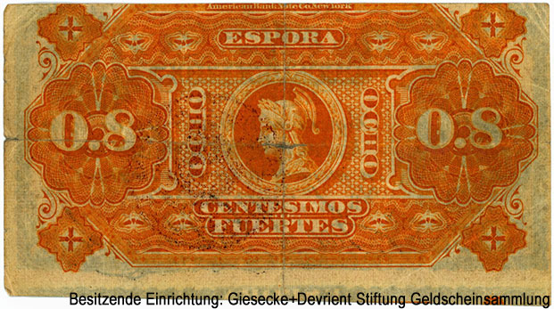 8 сантимов — 1º Enero de 1869. 102 х 56 мм. [5.1] |