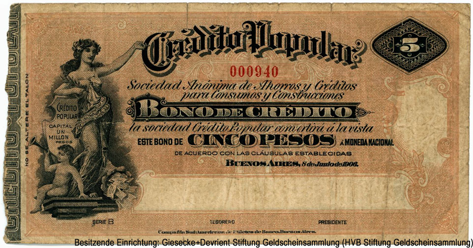5 песо — 8 de Juniode 1906. 158 х 83 мм. [5.1] |