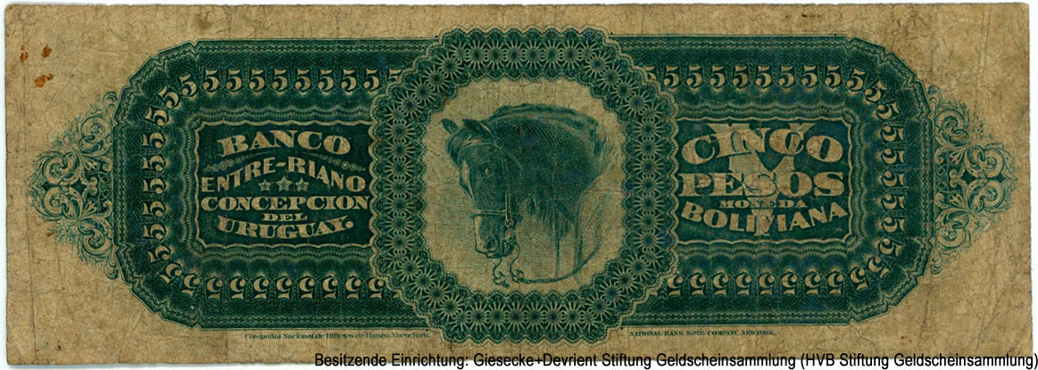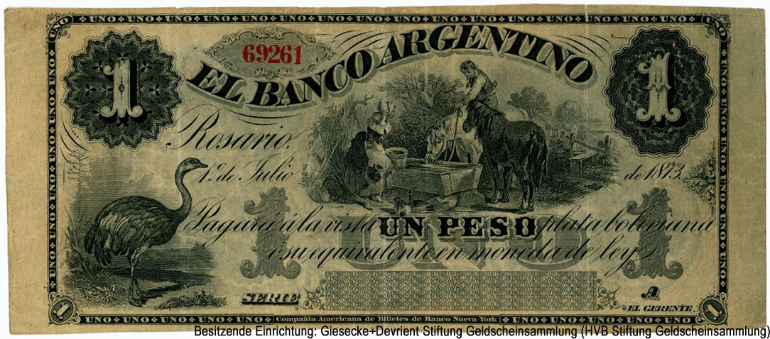 5 песо — Junio 1º de 1870. Серия А. 191 х 67 мм. [5.1] |