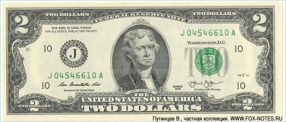2 доллара — SERIES 2013. J10 (FRB Kansas City) |