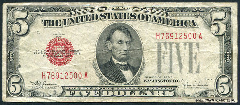 5 долларов — SERIES OF 1953 A. Пдпс.: Priest Anderson |