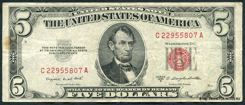 5 долларов — SERIES OF 1953 B. Пдпс.: Smith Dillon |