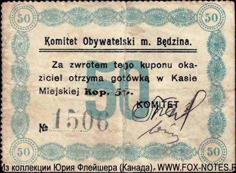 польском языке - Komitet Obywatelski m. Będzina. Za zwrotem tego