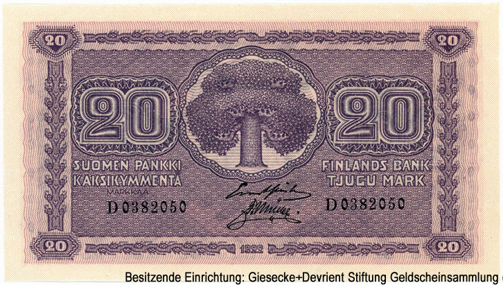 Финляндская Республика. Suomen Pankki - Finlands Bank. Билеты тип 1922