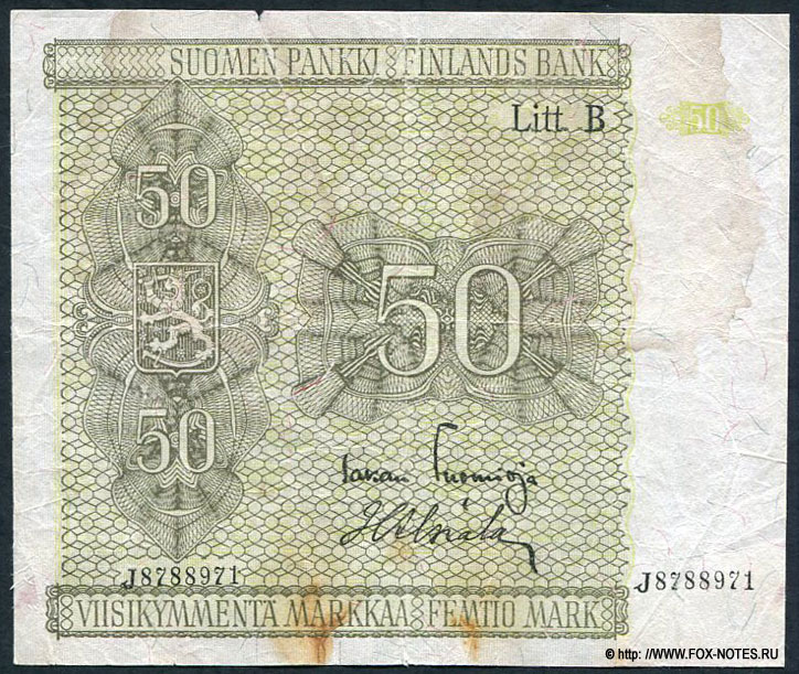 VIISIKYMMENTÄ MARKKAAS FEMTIO MARKS