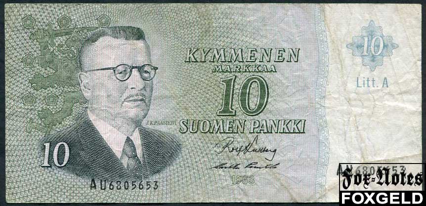 10 марок — 1963. Пдпс.: Koivisto,