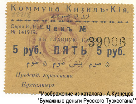 Коммуна Кизил-Кия. Чеки 1918 - 1919 года.