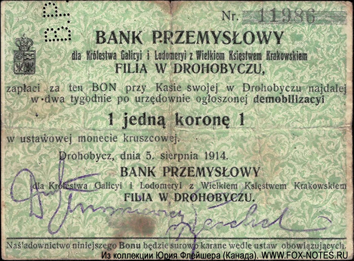monecie kruszcowej. Drohobycz, dnia 5. sierpnia 1914. BANK