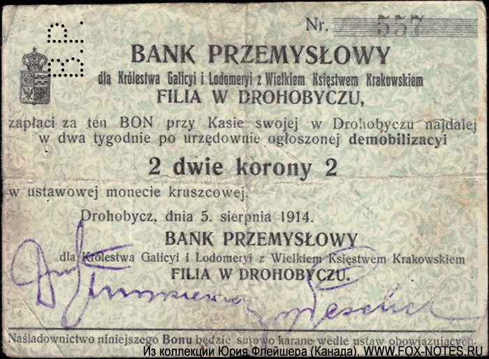 monecie kruszcowej. Drohobycz, dnia 5. sierpnia 1914. BANK
