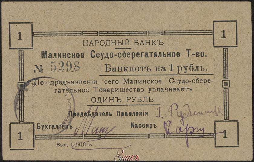 По предъявленіи сего Малинское Ссудо-сберегательное Товарищество