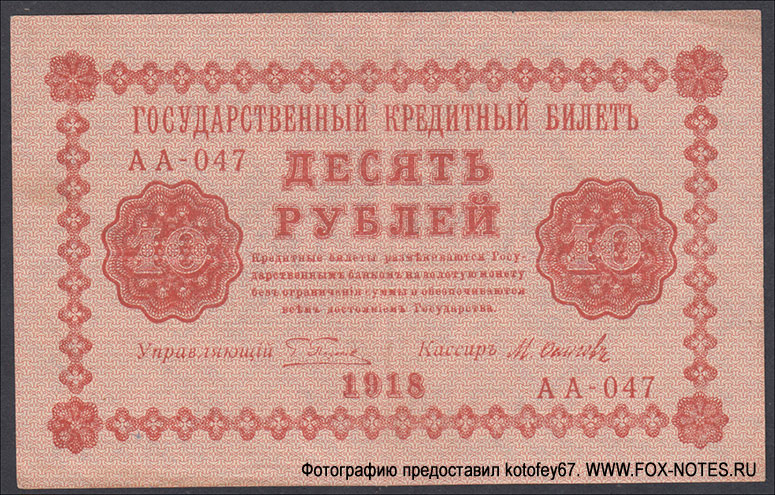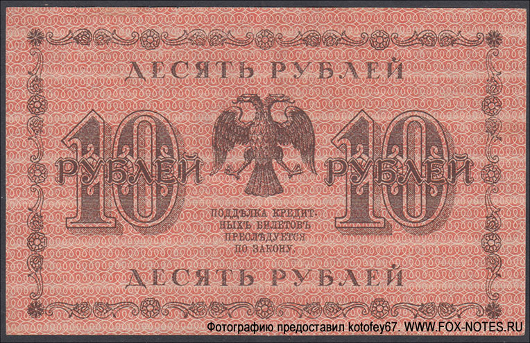 ДЕСЯТЬ РУБЛЕЙ. Преобладающие цвета: Л.с. рисунок