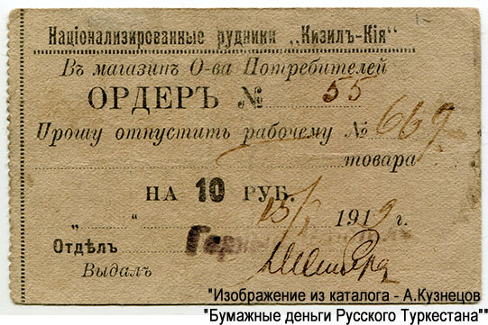 область. Национализированные рудники «Кизил-Кия». Ордера 1919