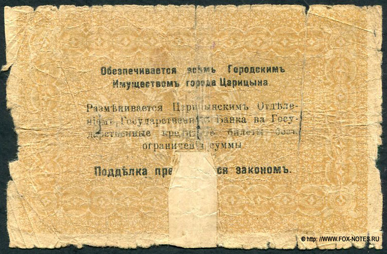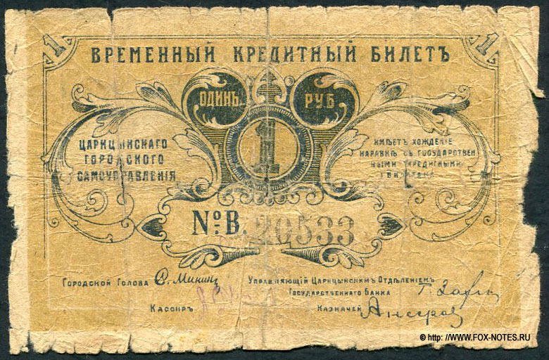 ВРЕМЕННЫЙ КРЕДИТНЫЙ БИЛЕТ ЦАРИЦЫНСКОГО ГОРОДСКОГО