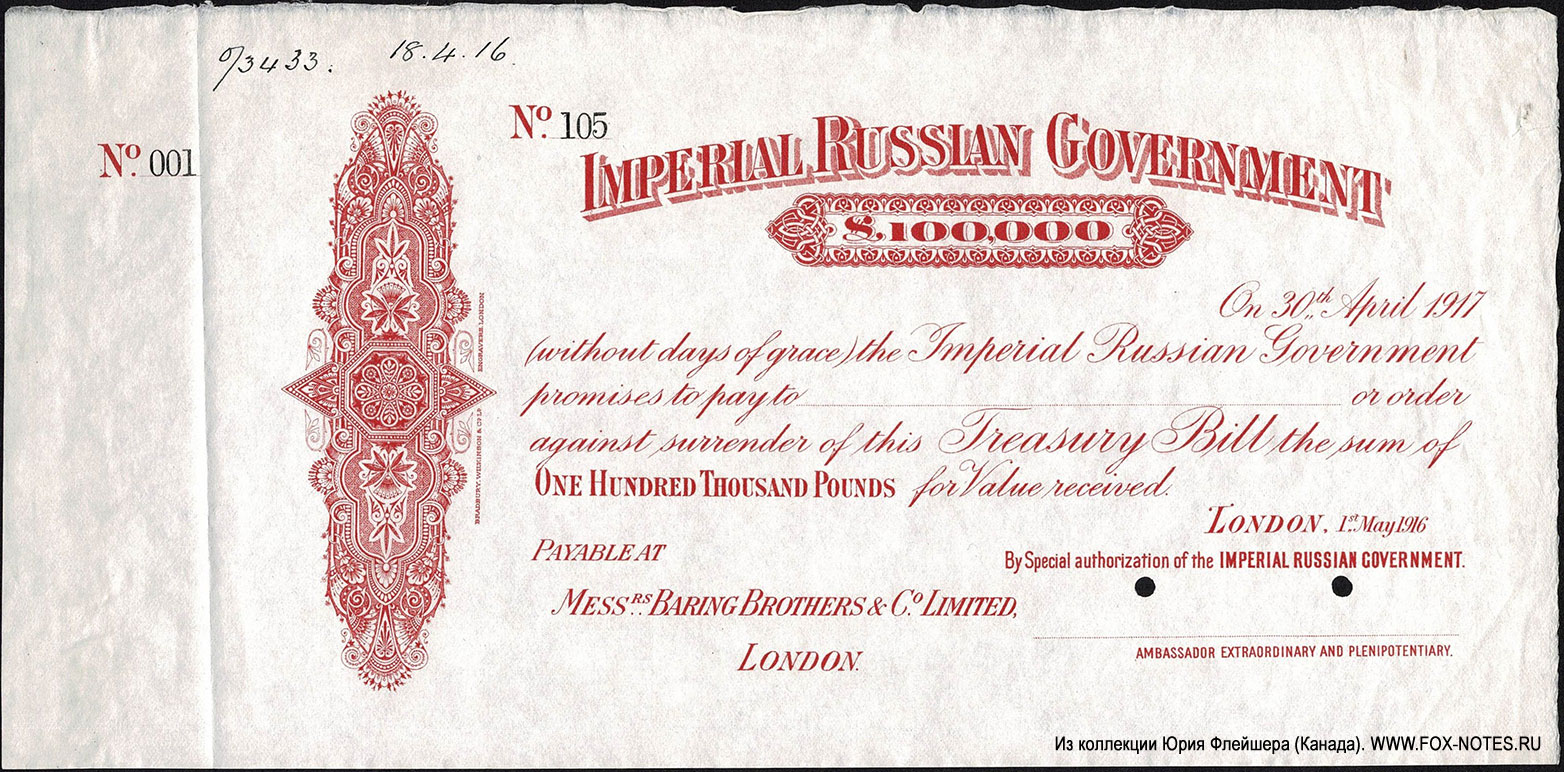 Императорского Правительства для Заграничного рынка 1915-1918гг.